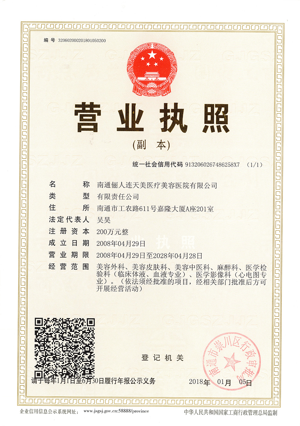 南通俪人连天美医疗美容医院是与著名的医疗美容集团合作建立的医院,医院提供高品质的医疗美容服务。2008年,南通俪人连天美医疗美容医院落户南通,成为由南通卫生局审批的专业医疗美容医院。南通俪人连天美医疗美容医院,特别设有专业的整形美容科、皮肤美容科和微创美容科三大科室,致力于为广大求美者提供全方位的医疗美容服务。南通俪人连天美医疗美容医院为求美者建立个人终生美丽档案,一对一进行细致服务。 11年来,南通俪人连天美医疗美容医院,不断引进先进设备,不断完善医美技术,一批优秀、专业而稳定的医生团队,为无数求美者铸就美丽梦想。