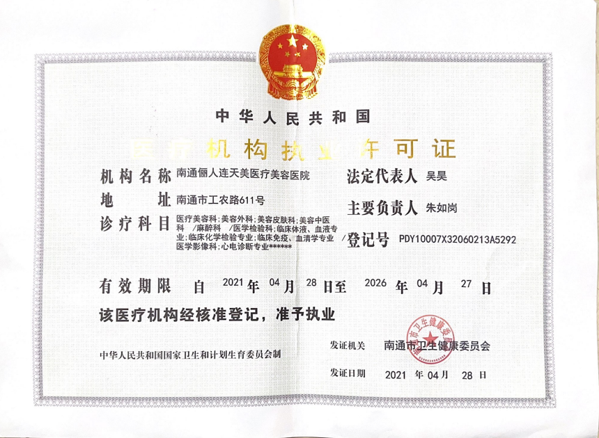 南通俪人连天美医疗美容医院分为两大科室,整形美容科和皮肤美容科。参与社会公益实践活动主要是在帮助他人、服务社会的过程中开阔视野、提升能力和完善自我。
